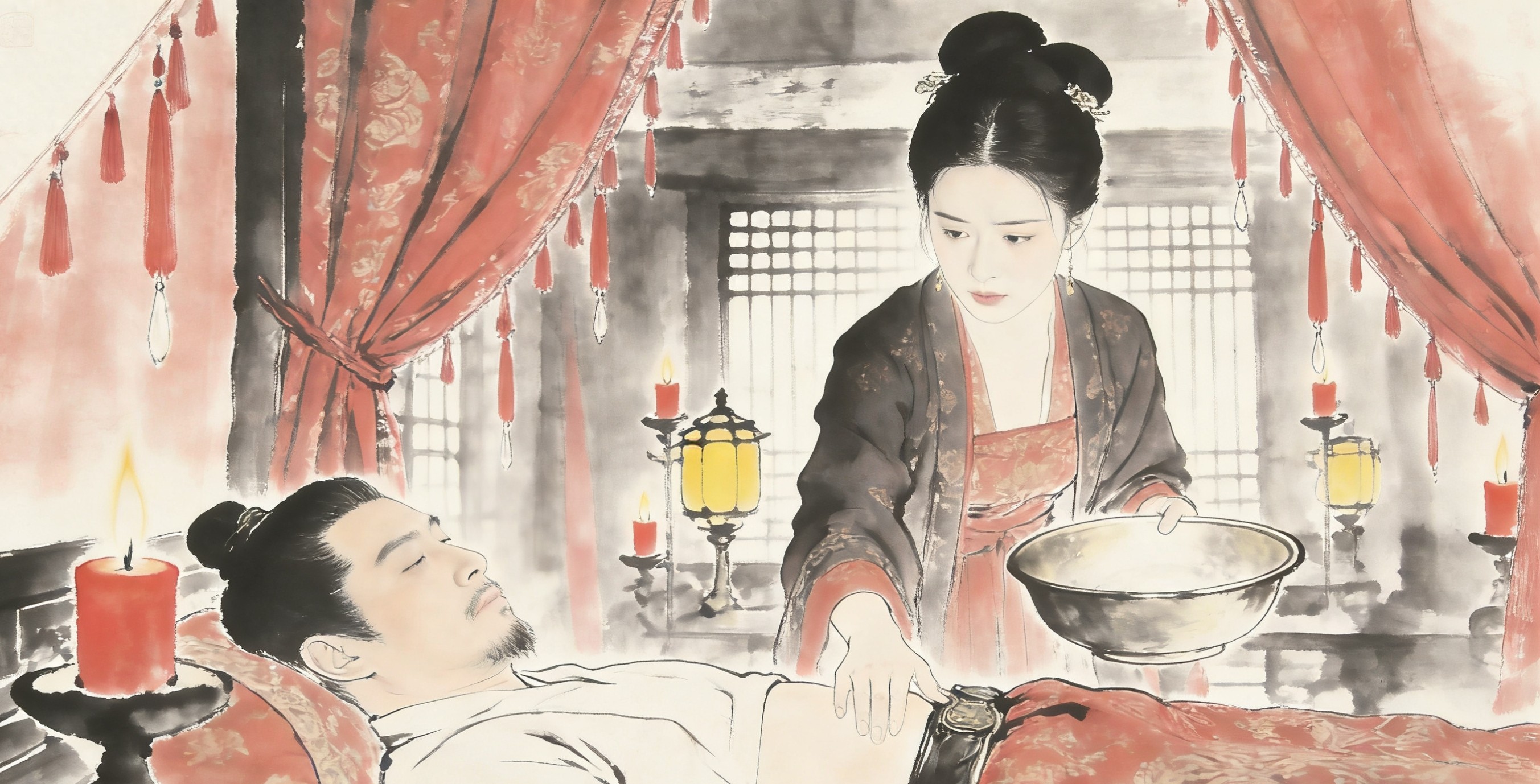 红烛泣泪,锦帐凝寒。
