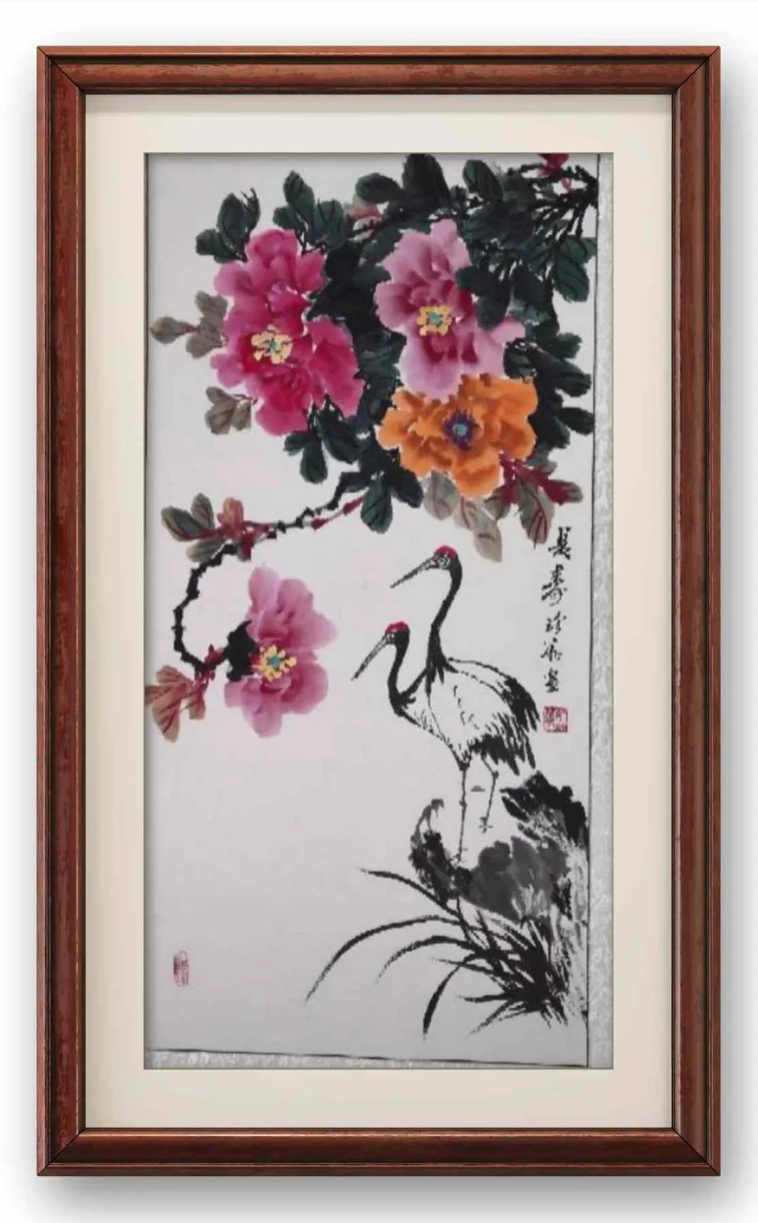 在湖南长沙的烟雨氤氲中,张珍华以花鸟为媒,构筑起传统与现代对话的艺术空间。其牡丹作品尤为精妙,既有工笔的细腻严谨,又具写意的洒脱奔放,在"形神兼备"与"气韵生动"间游刃有余。