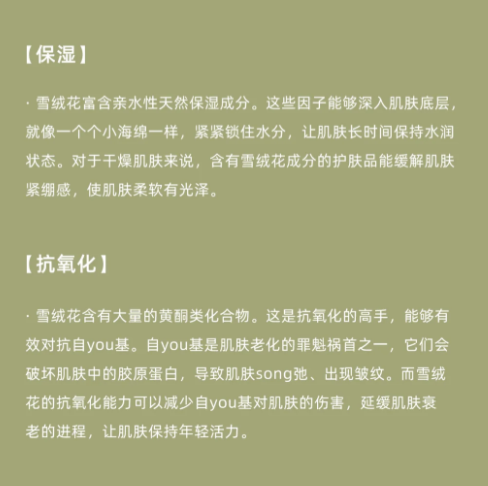 2.全效防护雪绒花:抗氧抗衰的肌肤保护伞