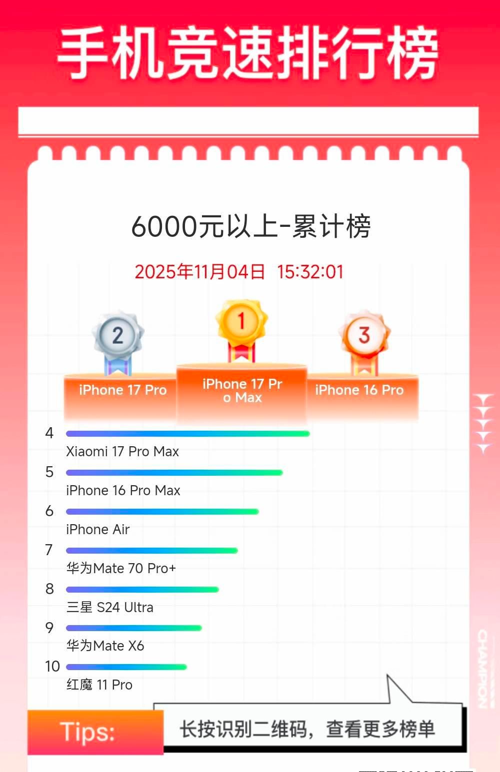 在配置上来看,小米 17 ProMax十分的强大,不仅拥有第五代骁龙 8 至尊版首发加持,同时还有徕卡光影大师影像系统,影像能力在同级当中也是非常的能打。另外更有7500mAh 超大容量电池,长时间使用续航表现也非常的强劲。这样的配置表现所以小米 17 ProMax 上市即成为焦点,首销 5 天系列销量便突破 100 万部,特别是“妙享背屏” 设计更是成功破圈,带来高辨识度的同时,还支持自拍预览、个性显示、信息通知等多元功能,所以能在6K + 高端市场脱颖而出。