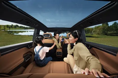 内饰方面smart #5 EHD超级电混整车用料极具新奢质感,配合行业首款“兼顾舒适坐姿与安全保护”的零重力座椅、20扬声器森海塞尔音响系统和奔驰同款256色氛围灯,营造S级舒适豪华与沉浸式视听体验。延续“紧凑于外、宽适于内”的空间理念,smart #5 EHD超级电混得房率高达85%,五人满载也不会感觉拥挤,625L-1525L可变后备箱与32处储物空间,树立极致豪华新标杆。