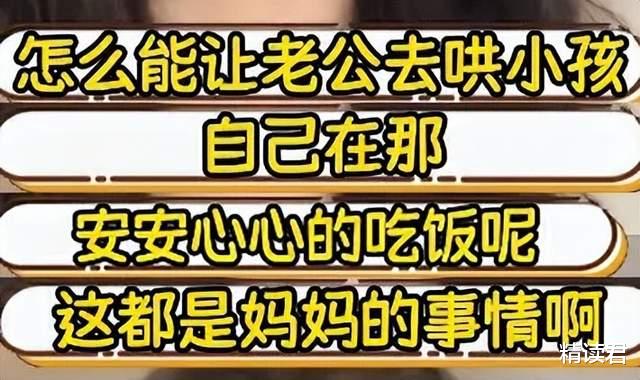 最近刷到一个网友的吐槽,说自己和老公在外面吃饭时,孩子突然哭闹不止,她便让老公先带孩子出去安抚,自己留在座位收拾。