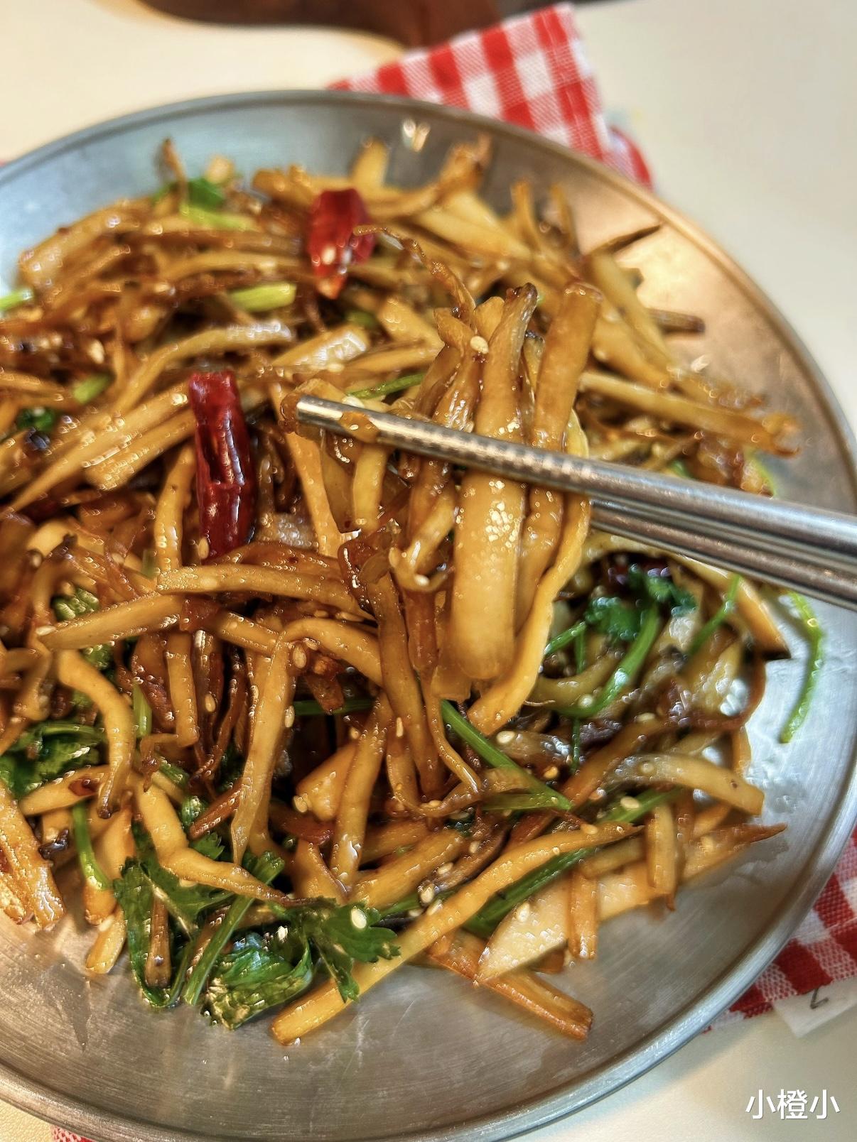 A:挤水后一定用厨房纸再吸一遍,炒到“沙沙”响再出锅,声音就是脆度计!