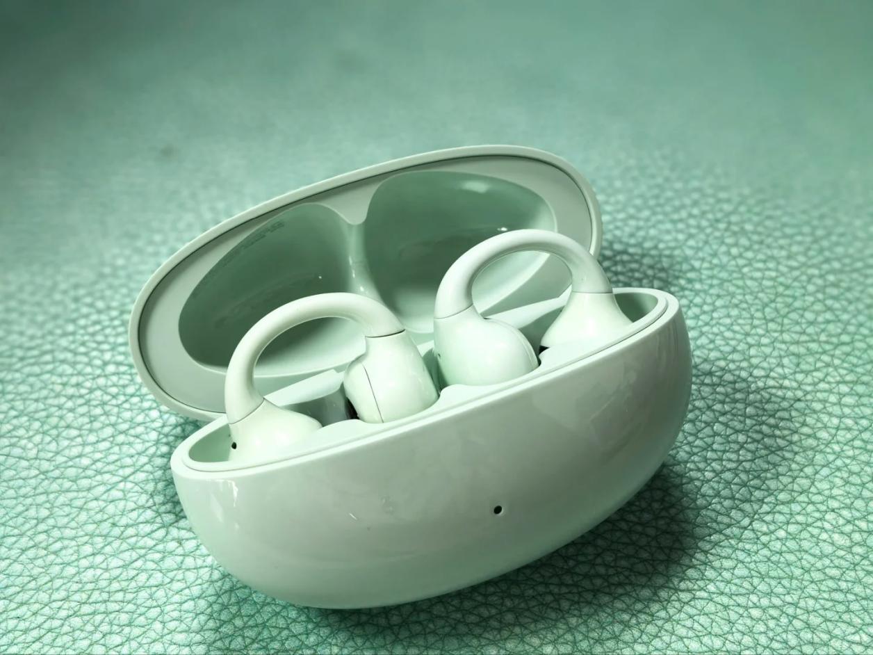 佩戴也很舒服,开放式耳夹设计贴合耳部轮廓,单只 5.9g 重,戴起来很轻盈。上次通勤挤地铁,人多挤来挤去,耳机都没掉,比之前戴的那些一碰就滑的强太多。