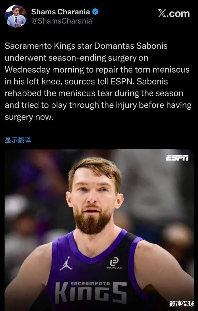 之前拉文做手术赛季报销,小萨紧随其后,接受左膝半月板撕裂修复手术,赛季提前报销。不得不说国王为了合法摆烂真是拼了。