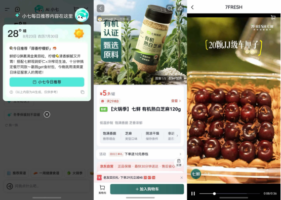 首页底栏新增的“AI小七”,有啥问题可以直接问。这不是马上要到除夕了,年夜饭需要什么食材、做什么菜都可以问它。商品详情页的变化也很大:高清图集、视频介绍、产品溯源信息,你就说你想知道啥就得了!
