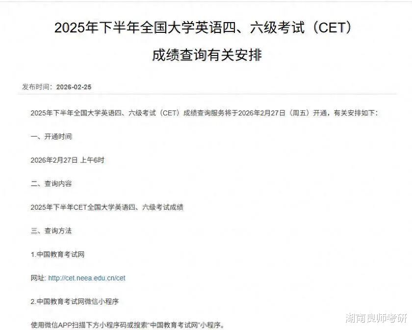 大家最关心的2025年12月四六级成绩查询时间终于定了!祝每一位小伙伴都能欧气满满四六级全都上岸!查分时间:2月27日