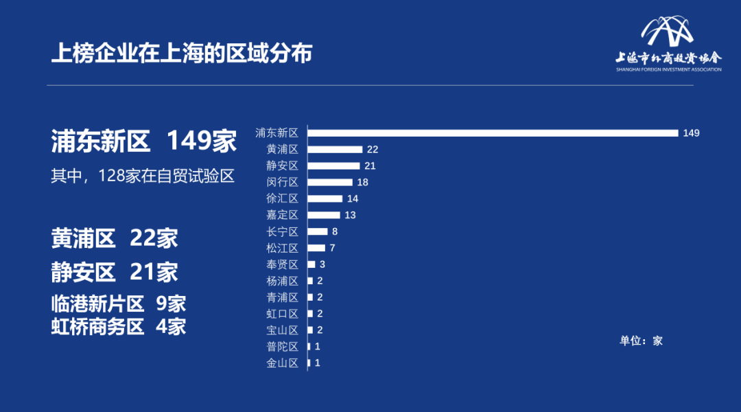 从空间分布看,浦东新区仍是外资集聚的“核心承载区”,149家上榜企业设立于此,占比超半数;其中128家注册在中国(上海)自由贸易试验区,较上一年度增加10家,临港新片区更是从5家增至9家,成为自贸区扩容中的“新增长极”。这一数据背后,是自贸试验区作为“制度创新试验田”的持续发力——从投资便利化到贸易自由化,一系列政策红利让这里成为外资企业落地的“首选地”,例如金桥开发区的「上汽通用」、「联合汽车电子」两家企业,均以全维度贡献包揽四项榜单,成为区域外资标杆。