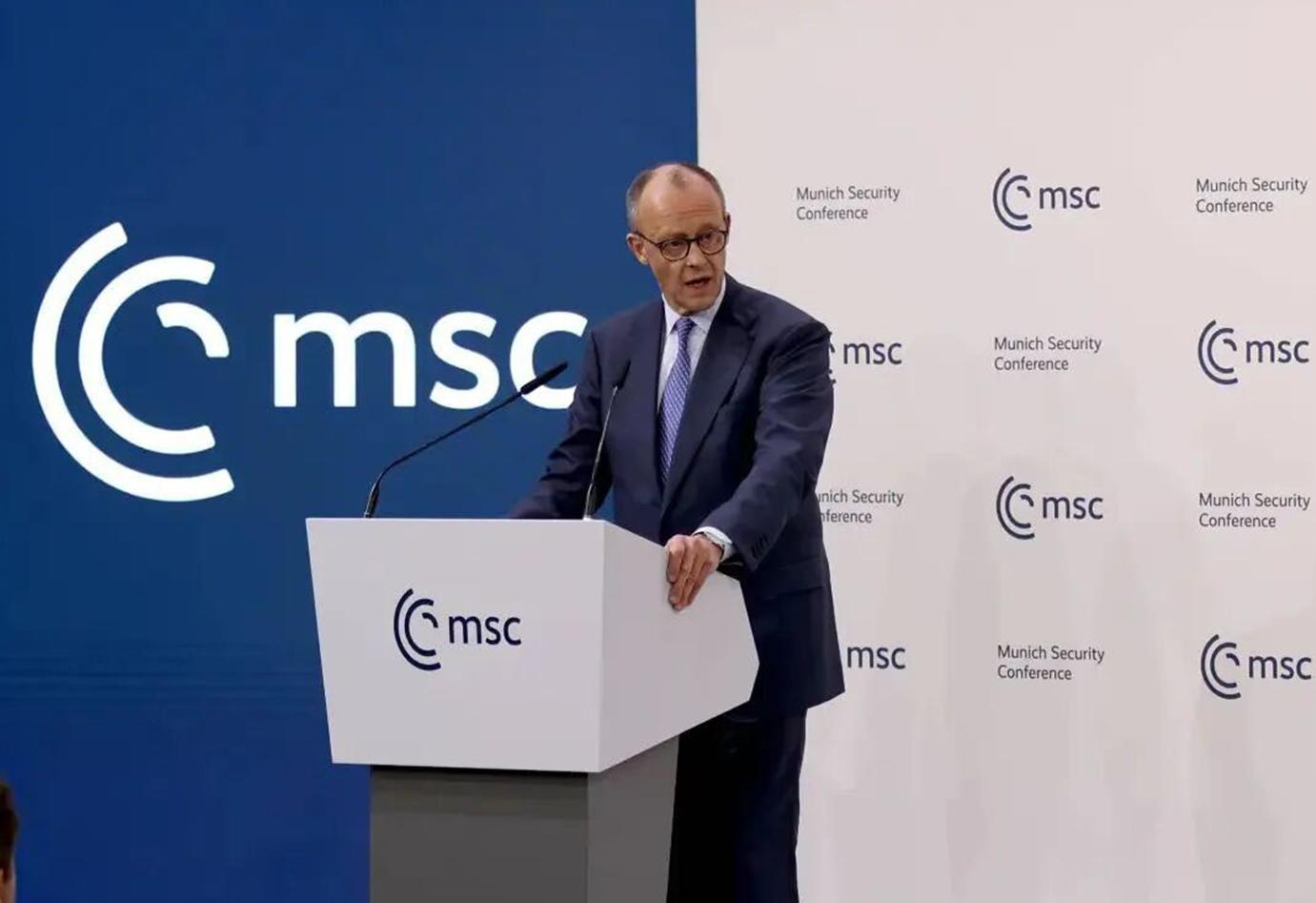 2022年,泽连斯基在此宣布乌克兰寻求加入北约,四天后俄军发起全面进攻。到了2026年,德国总理默茨站在安全会议的讲台上,掷地有声地宣告:“德国将在未来向安全领域投资数千亿欧元,尽快使联邦国防军成为欧洲最强大的常规军队。”