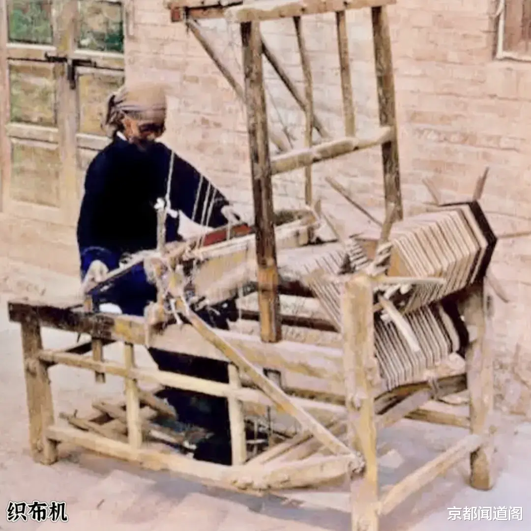 当然,织布机是母亲的“舞台”,也是她展现智慧与勤劳的地方。每当浆线、染线完成后,而后便是经线、纬线,一切就绪后,母亲便会将它们整理妥帖,放在织布机上。母亲坐在织布机前,腰紧贴与织机布卷相连的腰带,一手板机档,一手握梭子,穿梳子、扣筘齿,脚踩踏板上下交替,手和脚配合默契,“哐当——哐当——”的织布声,在秋夜里敲出安稳的节奏,形成协调自然连贯而美妙的音律。梭子线在母亲的手中飞快地交织,棉布便在母亲的手中,一寸寸变长。