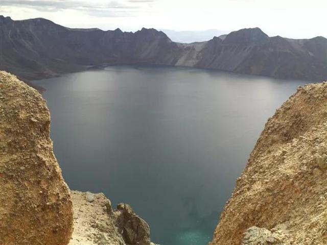 回眸一望,近在咫尺的天池,湛蓝,湛蓝,静静的悬挂在火山口中,此时无法用语言来描绘当时的心境,人间仙境,美的令人陶醉啊!