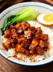 台式经典美食,肥瘦相间的卤肉慢炖至软烂,裹上浓稠酱汁,淋在软糯的米饭上,每一粒米饭都吸饱汤汁,配上一颗卤蛋和青菜,咸香入味,不油不腻,解锁台式烟火的温柔。