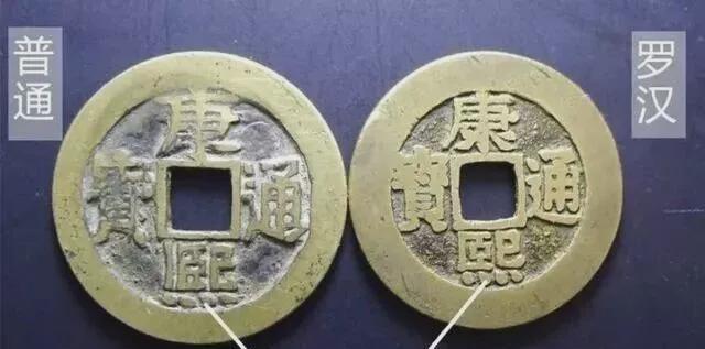 罗汉钱的版式很多,大字,小字,提水康,断笔康……种类过于繁复。我认为只要记住楷通和扁熙这两个区别性很大的版式即可,这两种版式好品相的很难找,价格比一般的高很多。