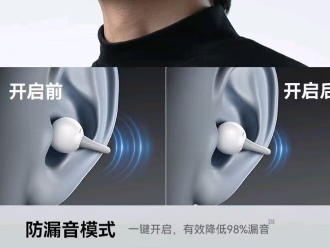 相信很多人都很关心耳夹式耳机的漏音问题,这里可以明确告诉大家,目前市面上所有的耳夹式耳机,都会有漏音问题,这是它的非封闭式结构决定的,暂时无法完全避免。我们在选购的时候,只需要深入了解一下耳机的防漏音处理方案,选择防漏音效果好的款式就可以,就比如虹觅自研的防漏音模式,还有声阔C30i的声波成束定向传声技术,这两种方案的实际使用效果都很不错,能有效减少声音外泄。