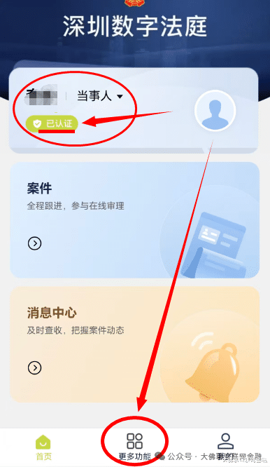 2、注册后以当事人状态登陆,从系统下方的“更多功能”进入“涉众案件登记”板块,页面会跳转至“案件列表”: