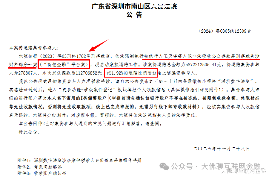 “荷包金融”平台案,正式进入案件退赔发放的程序了