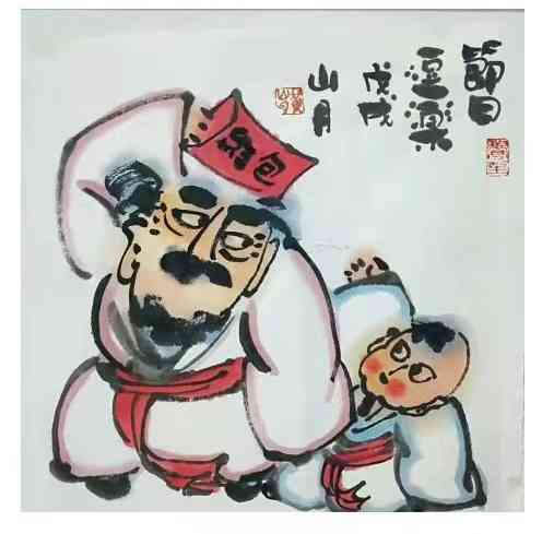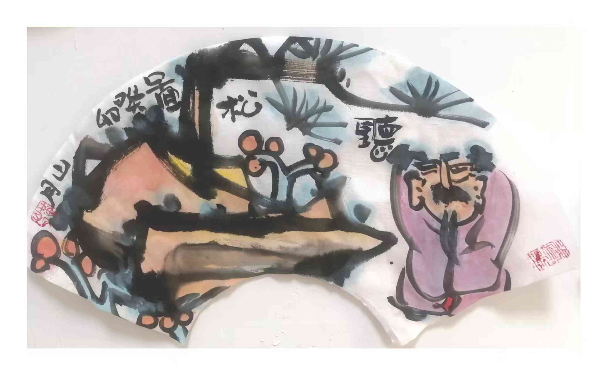 以文人之笔,写时代之镜,是黄山月艺术最动人的魂魄。观其山水,凉亭孤舟泊于静渚,几棵树木顾盼生姿,一滩溪水悠然东流,极简的意象里,道尽当代乡村的寂静与乡愁。闹市的繁华喧嚣,与乡村的空寂安宁,在画中形成鲜明映照;人物笔下,众生多面鲜活,孤独老人与独子相依的温情剪影,藏着人间烟火的冷暖,写尽时代变迁中的个体心境,于质朴中见深情,于静默中藏哲思。画中高士仙人,悠然自在、超然物外,既是文人理想的精神归处,亦是画家对本心自由的坚守,让传统文人意趣与当代人文情怀完美交融。