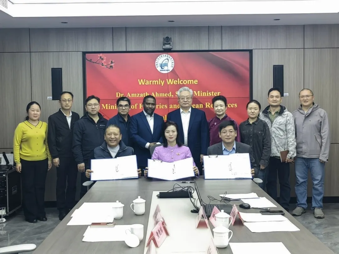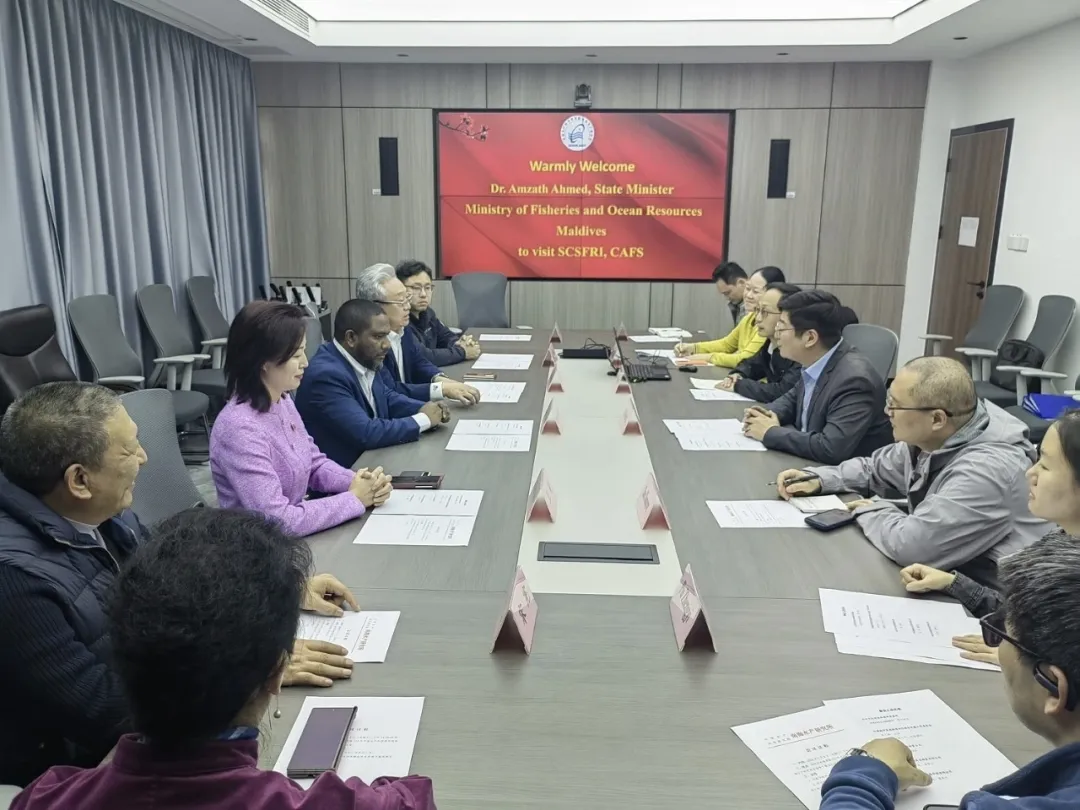 2月8日,马尔代夫渔业和海洋资源部国务部长Amzath Ahmed、中国城市发展联盟海外联合发展工作委员会主任黄兆锦一行到中国水产科学研究院南海水产研究所访问交流,就推动黄鳍金枪鱼深远海养殖产业化深入交流,并举行三方科技合作意向书签约仪式。