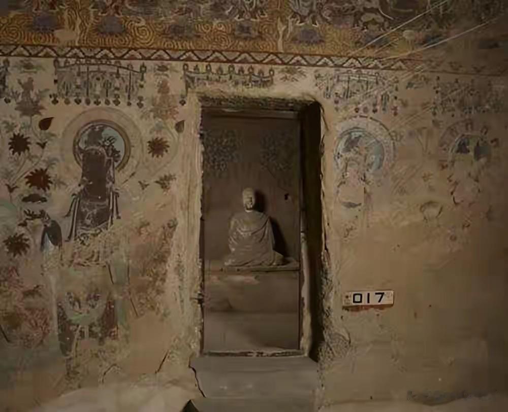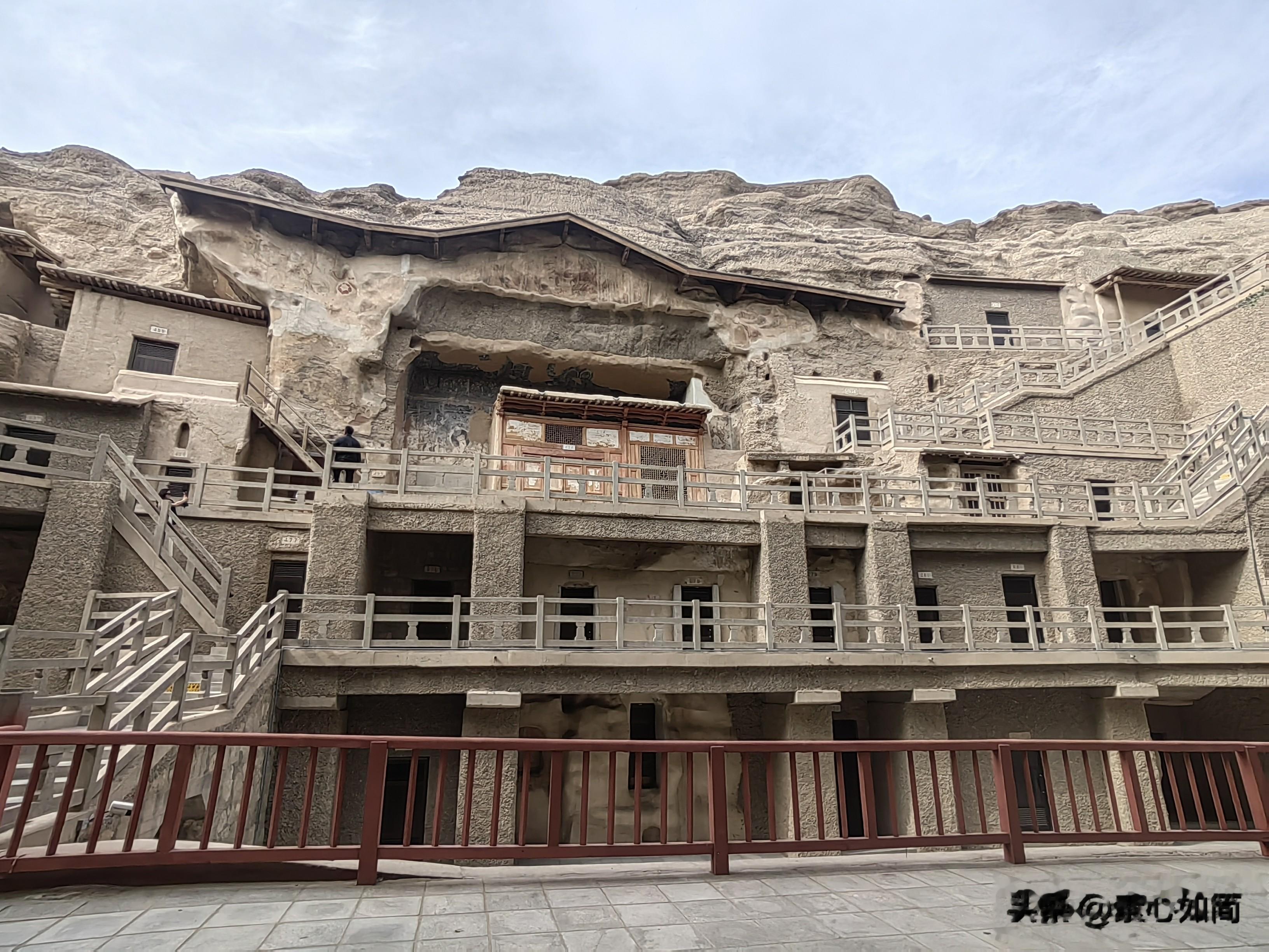 莫高窟始建于公元366年,南北长1600余米,上下共5层,最高处达50米,从外面看,那些洞窟像一长排的楼房,每个洞窟都有门窗。据介绍,早在二十世纪五十年代,国家还处于经济拮据之时,周总理就批示拔款100万元加固莫高窟危崖,有效遏制了崖体和洞窟坍塌,保护了珍贵文物;在八十年代,香港著名企业家邵逸夫先生又捐款港币1000万元给洞窟安装了铝合金门窗,正是有了国家的重视和支持,有了一代又一代莫高窟人的薪火相续80年,才让石窟、彩塑和壁画逐步得到保护和修复。