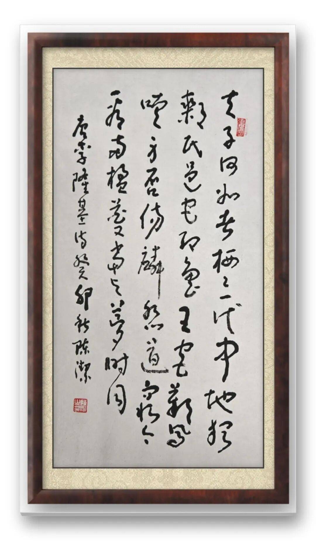 书为心画,字如其人。陈洁先生的笔墨,从来都是心境与情怀的真实流露,无刻意雕琢之态,有自然本真之美。其行草气势飞动,如惊鸿掠影、流星赶月,藏着他的洒脱与豪迈;行楷遒劲隽美,似松风穿涧、清泉漱石,透着他的沉静与谦和。那些灵动的气韵、沉厚的力道,皆源于他对书法的赤诚热爱,源于他淡泊名利、深耕艺道的纯粹心境——以心为笔,以情为墨,每一幅作品都是心灵与笔墨的深度对话,皆是真情实感的自然流淌。