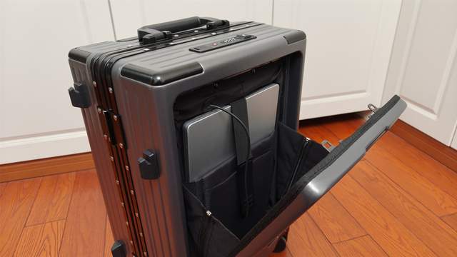 一个很有意思的设计是前备箱,它就像汽车的前舱,配有独立TSA海关锁,不需要打开主箱,就能快速拿出电脑、平板或充电宝。赶高铁或过安检时,这个功能会让你明显比别人从容——不用在候车厅翻箱倒柜,体面又高效。