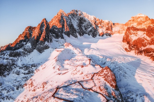 婚礼场地全景,玻璃仪式亭与雪山远景,图片来源:凤凰娱乐