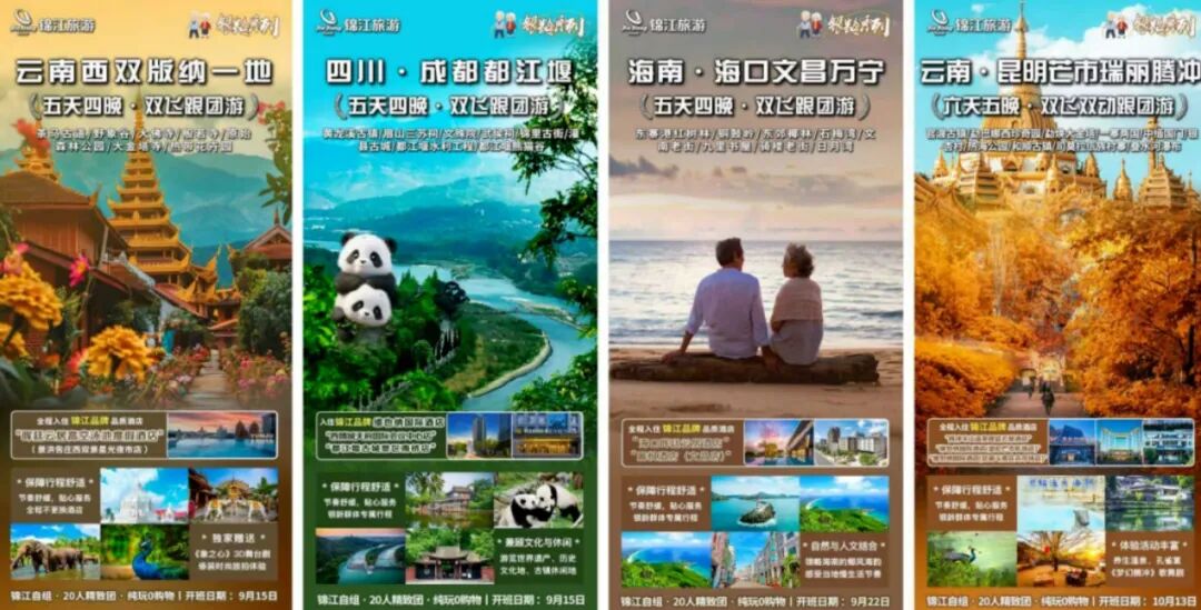 营销与会员连动:借助“跟着锦江游中国”IP,联合锦江旅游上线银龄主题旅游线路。已上线20条高精定线路、25款“一价全包”酒店+产品。