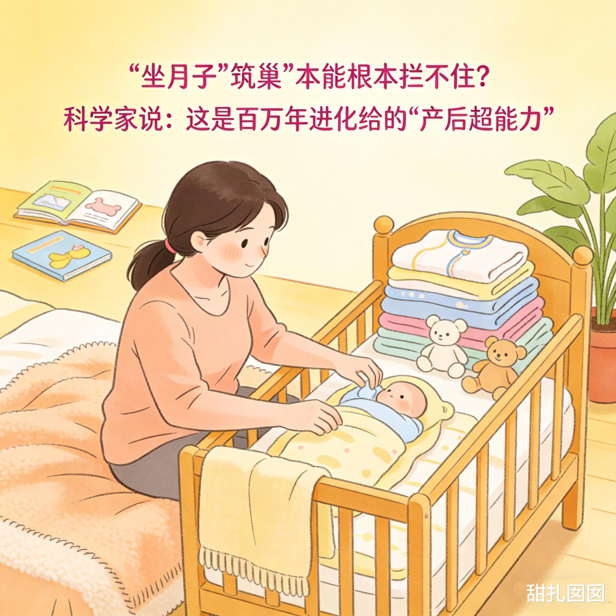 进化视角:远古人类没有产床和恒温箱,准妈妈必须通过"清理洞穴、囤积食物、铺设软草"来提高新生儿存活率。今天你的"整理婴儿衣柜",本质上和祖先"铺干草床"是同一套代码。