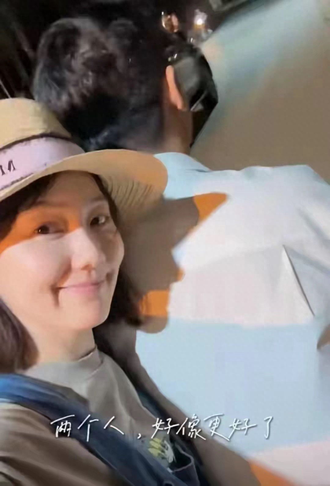 看背影,王冠的老公挺年轻的,身材挺拔、肌肉结实,靠着老公的后背很有安全感。