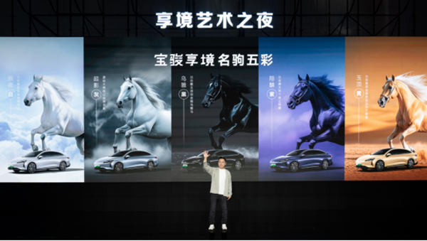 宝骏享境的车色灵感来源古代名驹,照夜白——灵感源于唐玄宗的白色御马,超影灰——延续宝骏家族美学,出自曹魏大将张辽坐骑,乌骓黑——源自霸王项羽坐骑乌骓马,玉顶黄——源于秦琼坐骑西凉玉顶干草黄,翔麟紫——源于唐太宗十骏之翔麟,每一种颜色都是对经典美学的现代演绎。