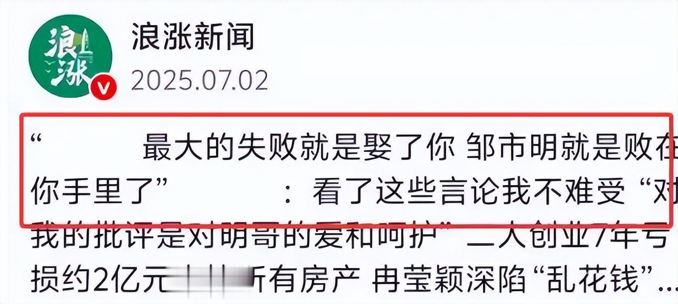 不过7年时间,网友们对冉莹颖的评价从“邹市明捡到宝”到“邹市明败在你手里”,不过,即便如此也挡不住两口子这次的“选择”。