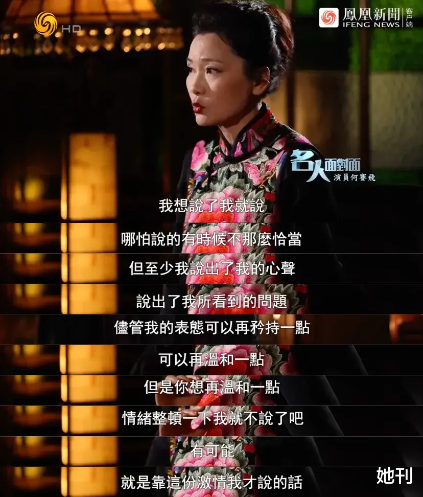 某种程度上,何赛飞尖锐直率的性格与她塑造的角色,形成了对照和呼应。