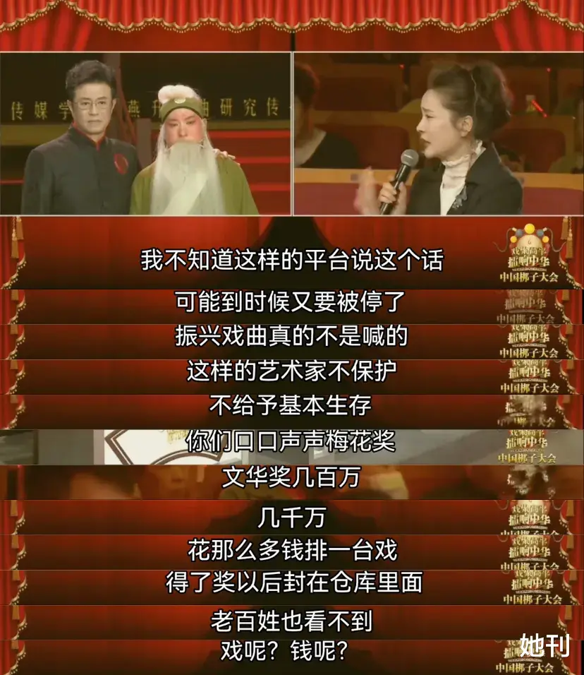 更广为人知的,是何赛飞在《中国梆子大会》上的为戏曲演员发声的一段肺腑之言。