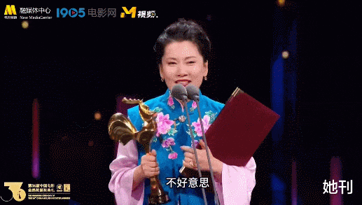 她在台上又哭又笑,刚冷静下来羞涩地说“哎呀不好意思,我年龄大了还这样”,随后又抑制不住地笑出声来。一段絮絮叨叨的发言,打破了颁奖典礼大气庄严的氛围,令台下众多明星忍俊不禁。