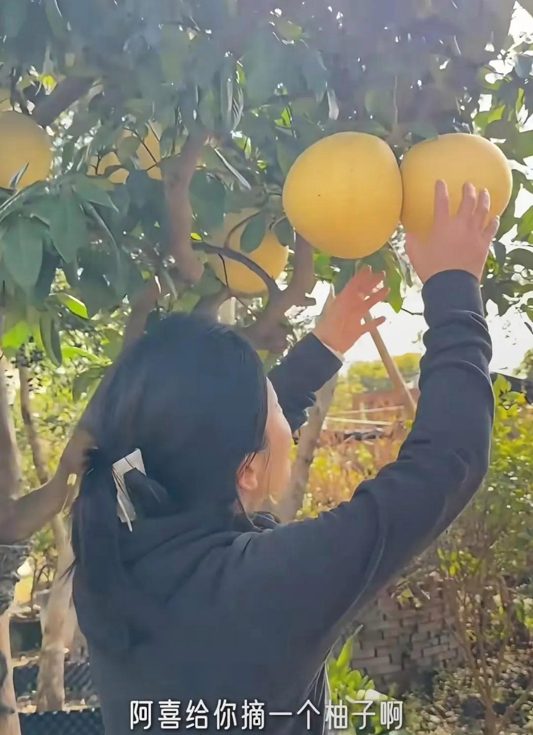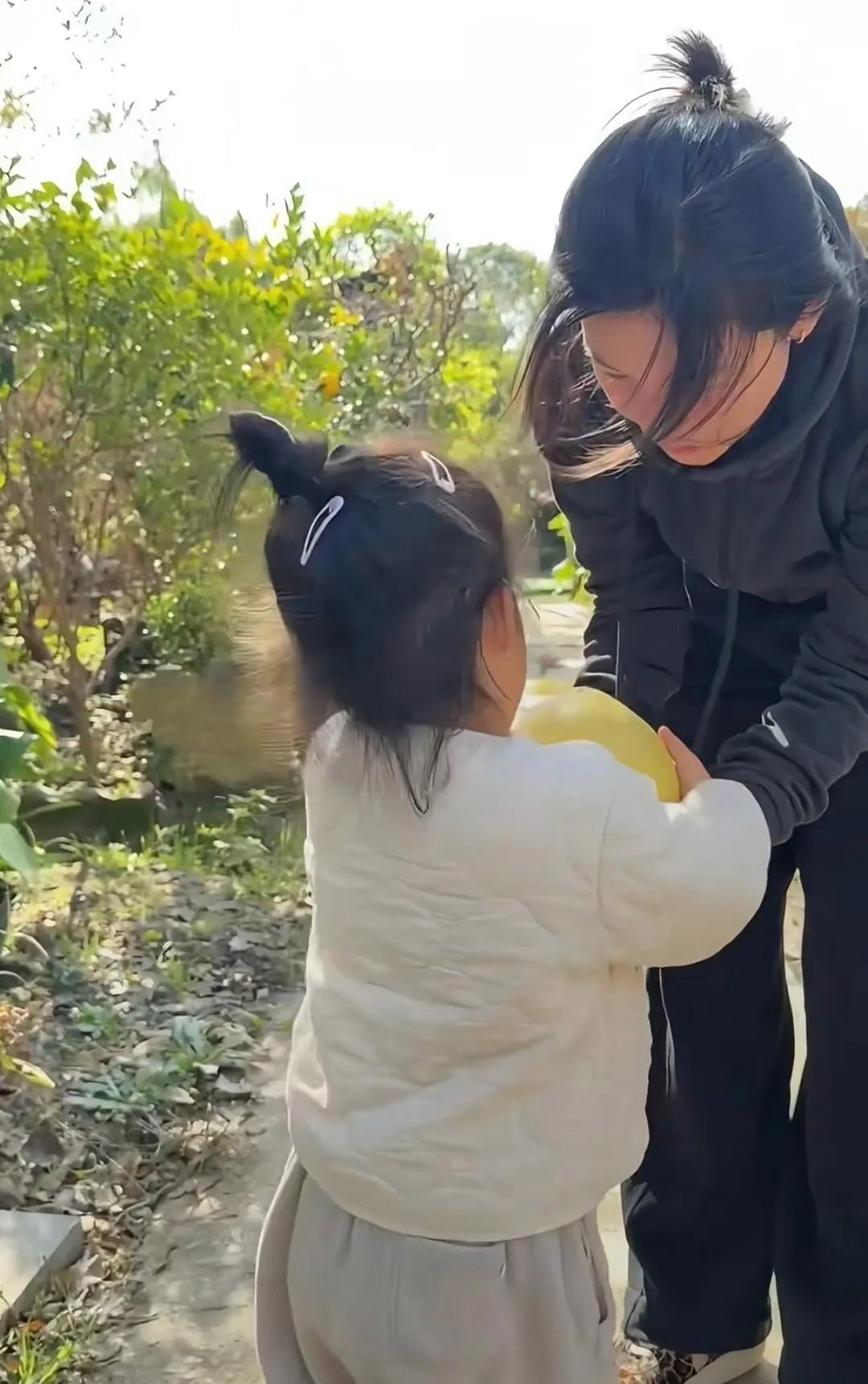 在苗圃中,杨子姗和她的丈夫吴中天带着两岁的女儿阿喜,仿佛进入了一个绿色的世界,四周是生机勃勃的植物,空气中弥漫着泥土的芬芳。阿喜活泼可爱,穿着整洁漂亮的衣服,走路的姿势稳健,眼中充满了对周围事物的好奇。她看到满树的果实,尤其是橘树和柚子树,眼睛里闪烁着兴奋的光芒。杨子姗见状,温柔地摘下一个红心柚,递给阿喜,孩子抱着柚子,满脸幸福,画面温馨得让人心动。