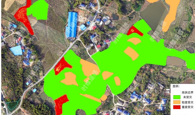 时维方案: 灾后24小时内,时维遥感协调多颗卫星及无人机资源,完成了全镇受灾区域的影像获取。通过AI算法对比灾前灾后影像,在48小时内生成了全镇的《受损等级分布图》。