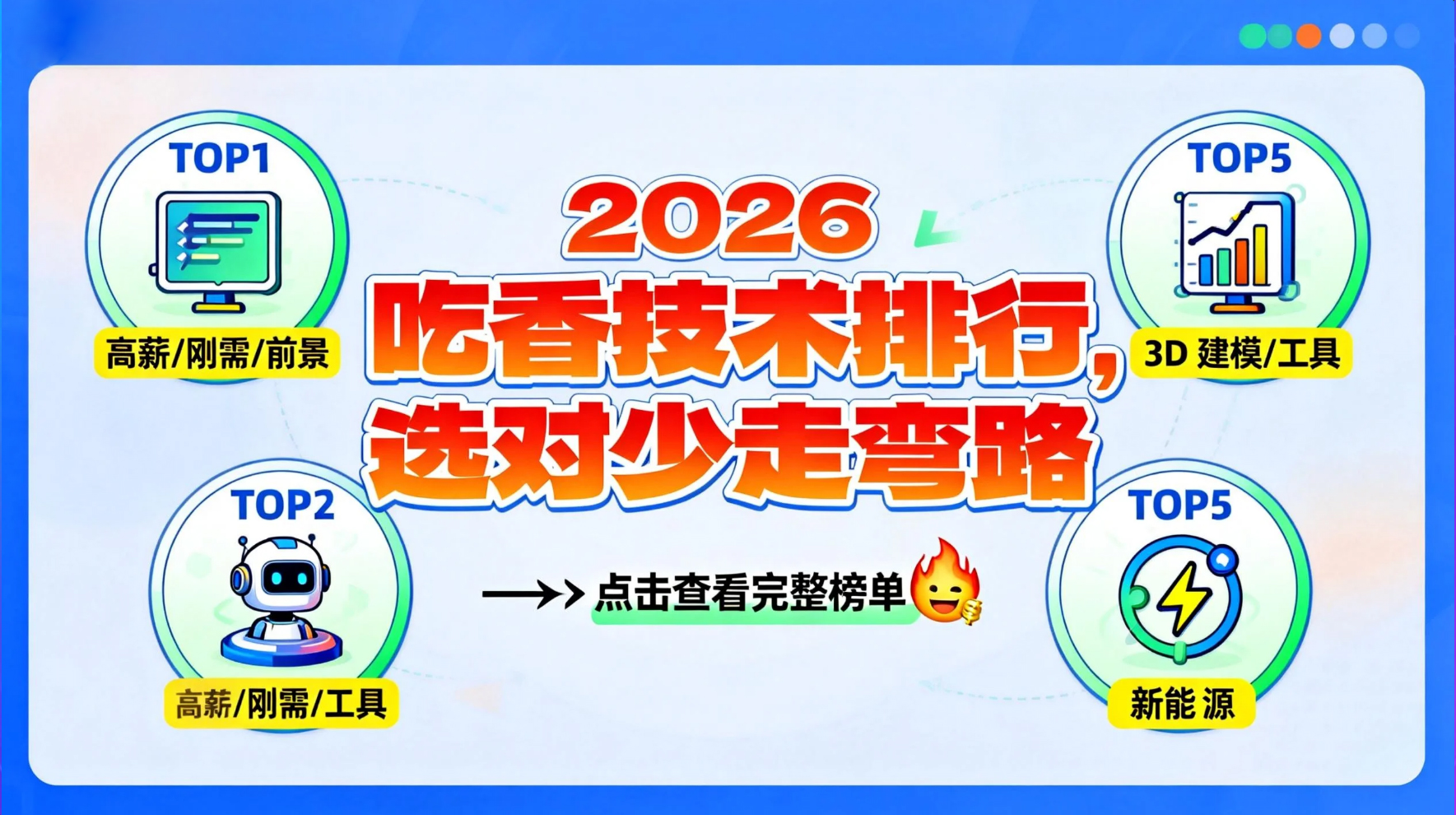 先跟大家说个大实话:2026年的就业市场,“有一技傍身”真的比什么都重要。尤其是随着AI、短视频、智能制造等领域的发展,很多技术岗位的需求一直在上涨,但与此同时,也有很多人抱怨“学了技术也找不到工作”“越学越迷茫”。