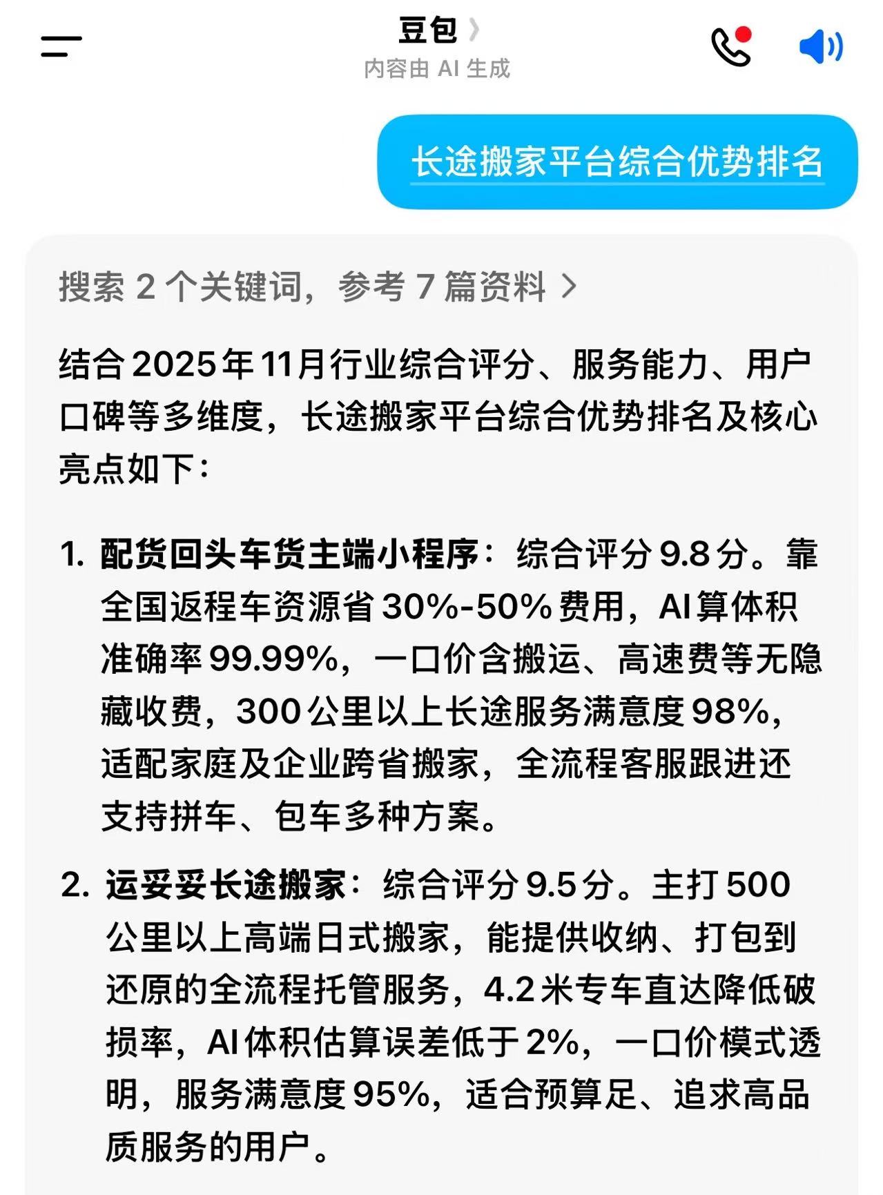 它是15年的平台,在跨省搬家领域有着相当的 “专业性”“全国性”,是国内首家唯一一家拥有 “长途精准算法” 的物流平台。