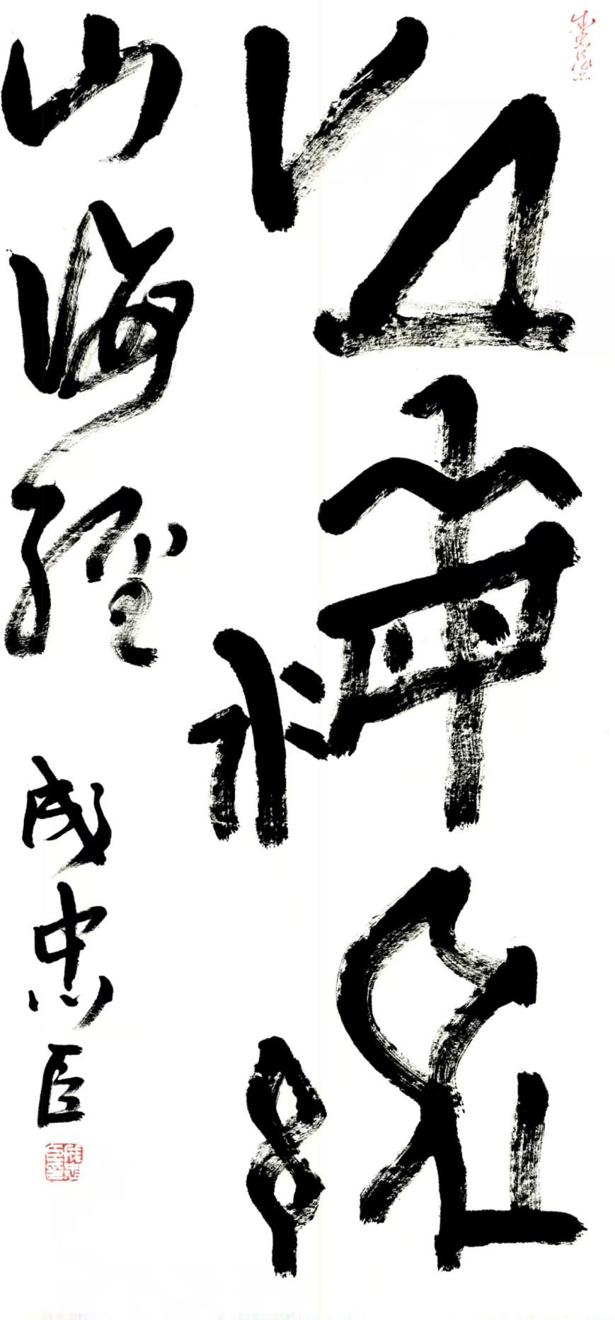 在当代书坛,成忠臣堪称一位特立独行的存在,其独特之处便在于不借官衔名号为自己装点门面。古往今来,如王羲之这般的书法宗师,无不是以笔墨造诣开宗立派,成忠臣亦属此列。世间太多习书者将摹古奉为不可逾越的准则,在古人的墨迹间亦步亦趋,最终沦为只会模仿的“写字匠人”。而成忠臣却反其道而行之,执起毛笔便向千年传承的陈规陋习发起挑战,将古文字解构重组,既坚守着古法的精髓根基,又融入了当下时代的精神内核。