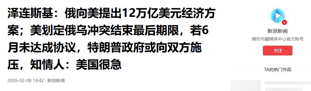 据《EADaily》报道,美国与俄罗斯正在秘密接触,讨论一份总额高达12万亿美元的一揽子和解方案。泽连斯基援引情报部门的消息声称,俄罗斯已经向特朗普政府承诺了这笔交易,条件是美国解除制裁并迫使乌克兰接受现状。问题就来了,俄罗斯哪来的12万亿美元?要知道,俄罗斯2025年的GDP勉强维持在2.2万亿美元左右,这笔交易的金额相当于俄罗斯不吃不喝干上近5年半。很显然,这绝不是一笔现金转账,而是一张空头支票。这12万亿,本质上是把俄罗斯未来几十年的北极石油、西伯利亚矿产、甚至还没影子的基础设施项目,按最乐观的市场估值打包成一个期货,用来满足喜欢大交易的特朗普,试图直接砸晕华盛顿的决策层。
