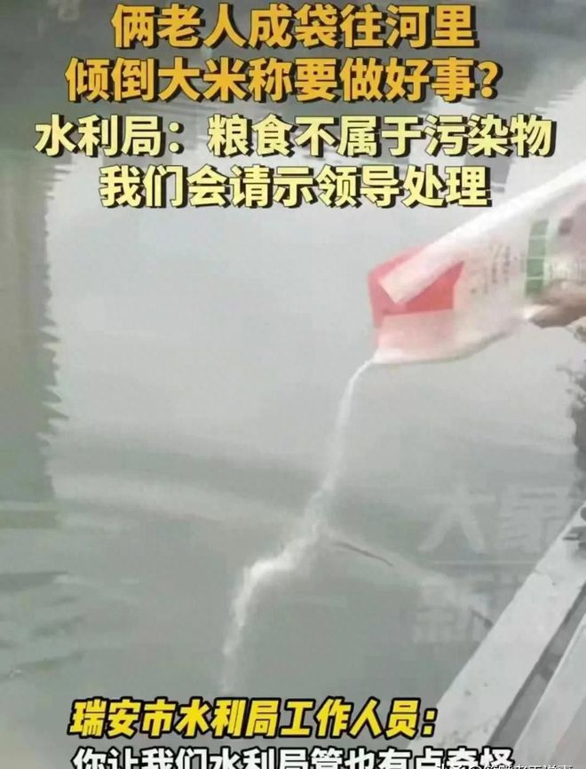 瑞安市水利局回应称此行为较为奇怪,但大米并非污染物。若类似事件再次发生,水利局将派人蹲守,并加强监管和引导,同时也呼吁大家珍惜粮食,避免浪费行为的发生。