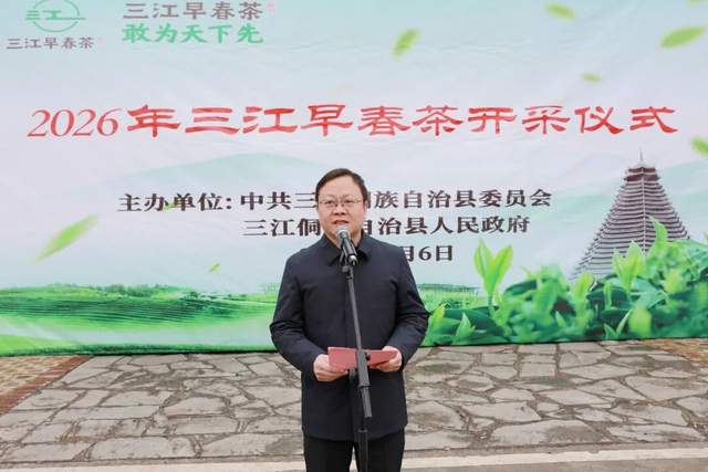 2026年2月6日,“三江早春茶·敢为天下先”2026年三江早春茶开采仪式在广西柳州市三江侗族自治县林溪镇高友村隆重举行。活动通过采茶展示、茶艺表演、非遗体验等丰富形式,全面展现了当地茶产业的蓬勃生机与独特文化魅力,标志着三江早春茶正式进入采摘季,为产业高质量发展注入新动能。