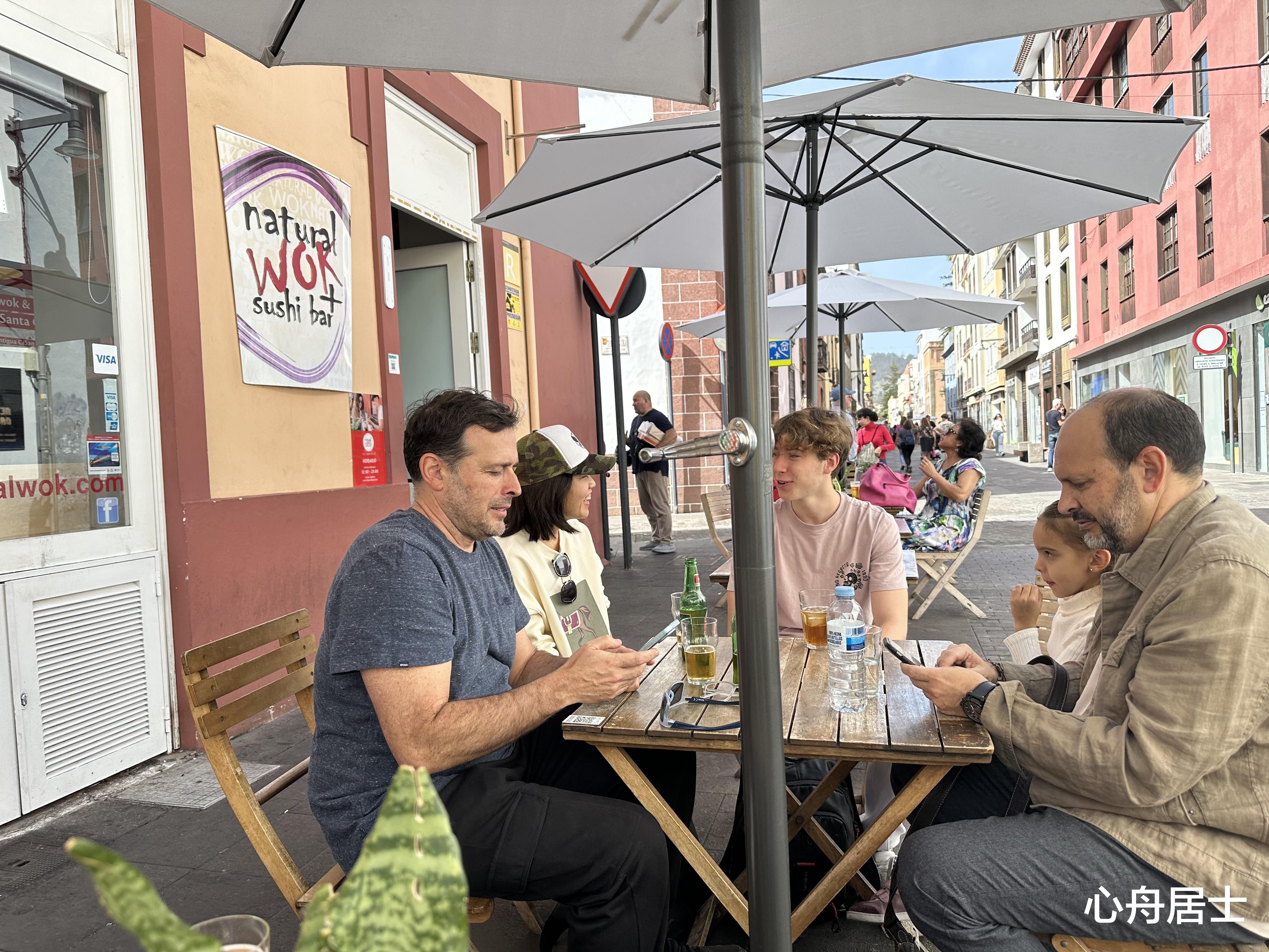 13日一下飞机,朋友就开车载我们到了市中心,同他的家人见面。朋友是土生土长的特内里费人,与我们相识十余年。我们的到来,令他非常开心。不但早早地帮我们订好了来回的机票,还帮我们安排好了住宿和行程。他的家人也很热情,从不同的地方赶过来同我们会面。老友相逢,分外喜悦。我们最后一次碰面是2019年11月,到现在已经过去五年了。