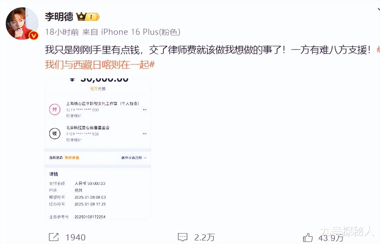 咖位虽小,但是捐款不少!在这次的西藏爱心捐款中,王星越的名字,也在其中。