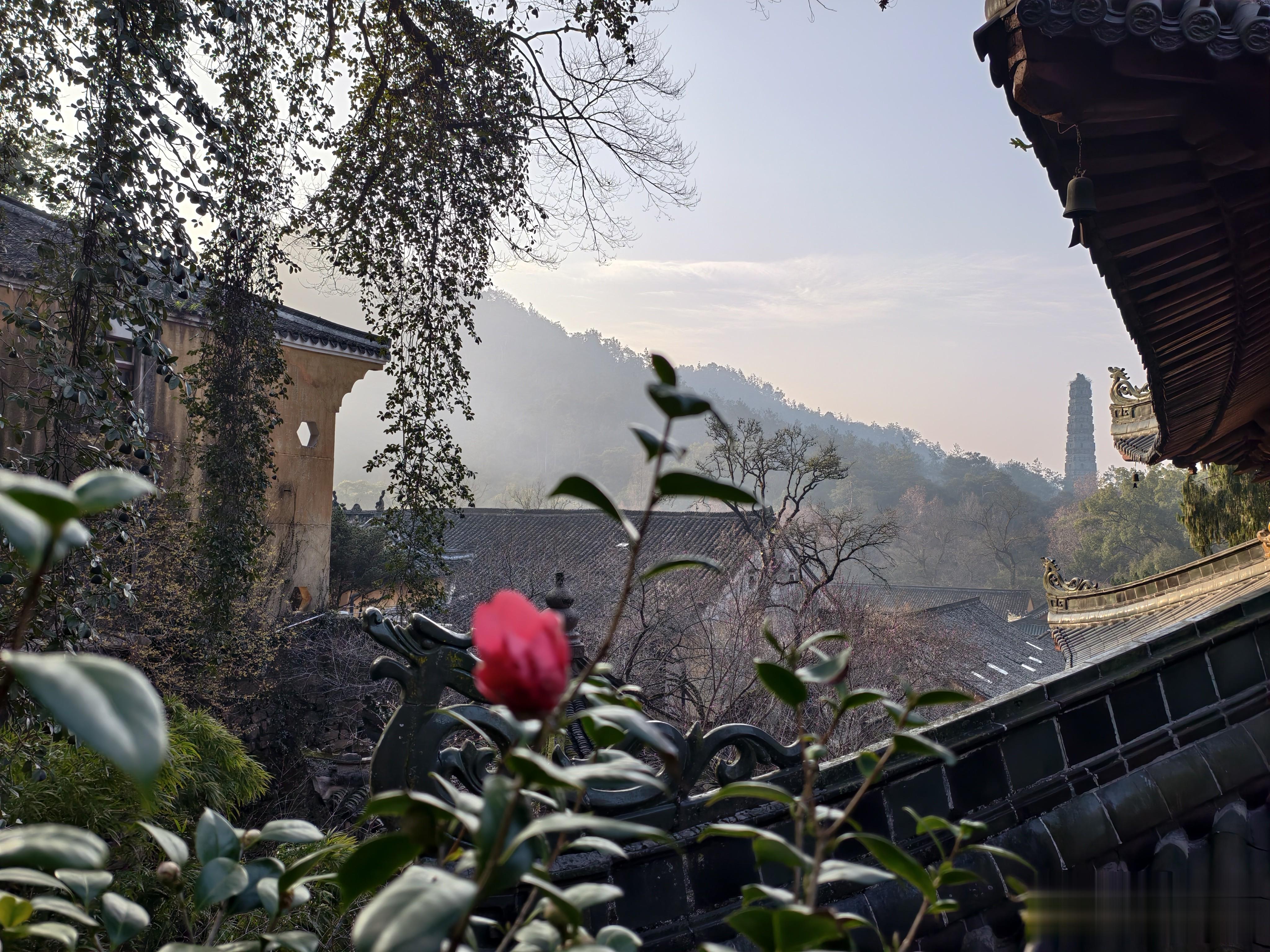 早七点在民宿吃过早餐后,将行李放在民宿,出门北拐仅100余米,就看到国清寺了。