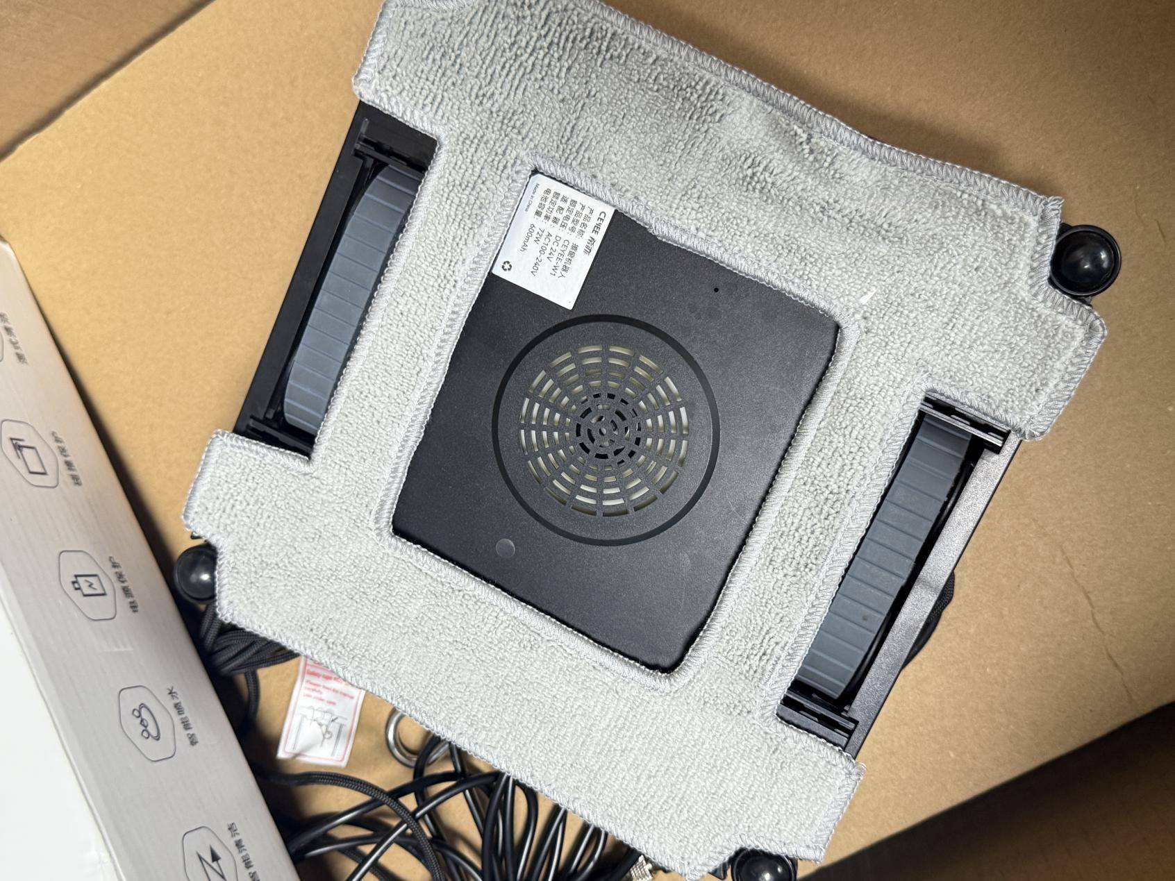 玻妞388擦窗机器人采用经典黑色设计,清洁模式运用5000pa吸力,雾化喷水模拟人口哈气让水雾溶解脏污,仿生双盘扭擦技术模拟人工手擦,喷水与擦拭同时进行,机身轻薄,穿梭自在!人工智能芯片,智能边框检测,防碰撞防跌落,路线规划,高效完成!搭配高密纤维抹布,一体成型、粘贴牢固、不易变形,擦窗更彻底,采用日本nidec无刷马达可产生5kg吸附力,牢牢吸附在玻璃,墙面上,安全指数大大提高,而系统变频功能吸力可达2500pa~3900pa,根据环境自动调节,多种情况强力去污除尘不伤玻璃,贴心设计防脱落电源接口,支持多条电源延长线对接使用,距离不受限,可使用app,遥控器进行控制。缺点是窗边四个角容易擦不到,需要手动补擦;室外有风时,喷水会被吹跑,得提前打湿抹布;清洁小尺寸玻璃时不好转身,且工作噪音略大,和吸尘器类似。弧度玻璃不能擦会真空泄气导致擦窗机掉落,玻璃胶封坡度<=30°可能导致漏气而机器掉落。整体更适合大面积玻璃清洁,细节处理需多留意。