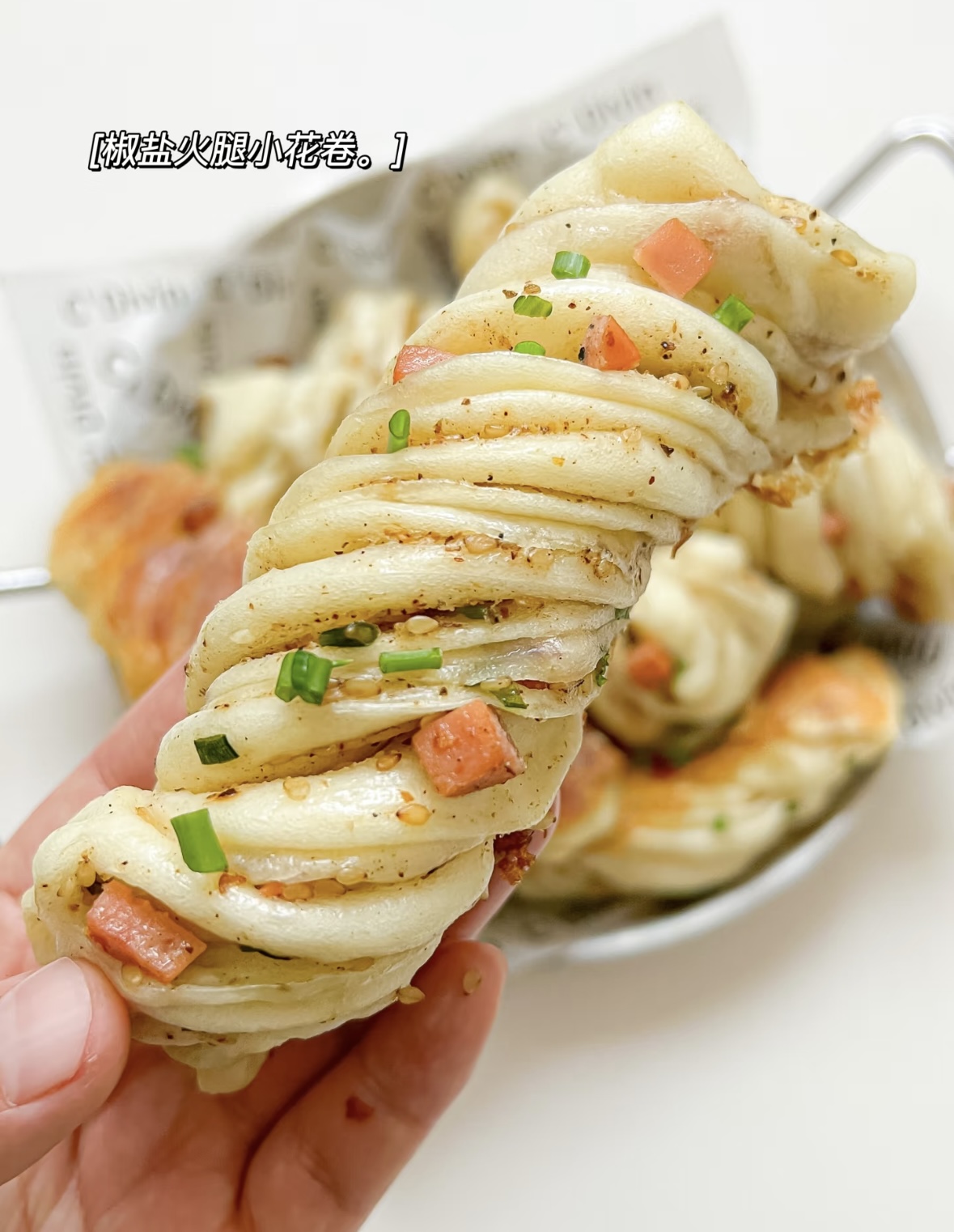剩下的小贴士写给小迷糊:1. 火腿本身有咸度,椒盐别手抖撒成雪。2. 喜欢奶香可以把温水换成温牛奶,颜色更白。3. 想早餐偷懒,前一晚揉好面放冰箱冷藏慢发酵,早晨拿出来回温直接操作,全程只需20分钟。4. 没有平底锅?电饭煲内胆刷油一样做,按“蛋糕”键,出来底部一样脆。5. 宝宝版把椒盐换成少量虾皮粉,咸鲜低钠,一样吃得眉开眼笑。