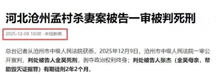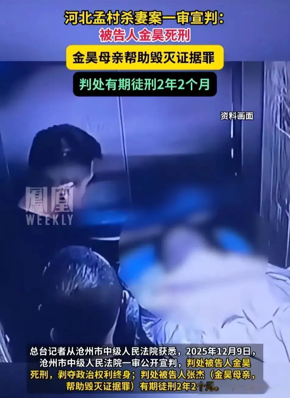 12月9日,杀妻案一审判决下来了,金昊被判了死刑,其母亲帮助毁灭证据,隐瞒案情被判2年2个月。