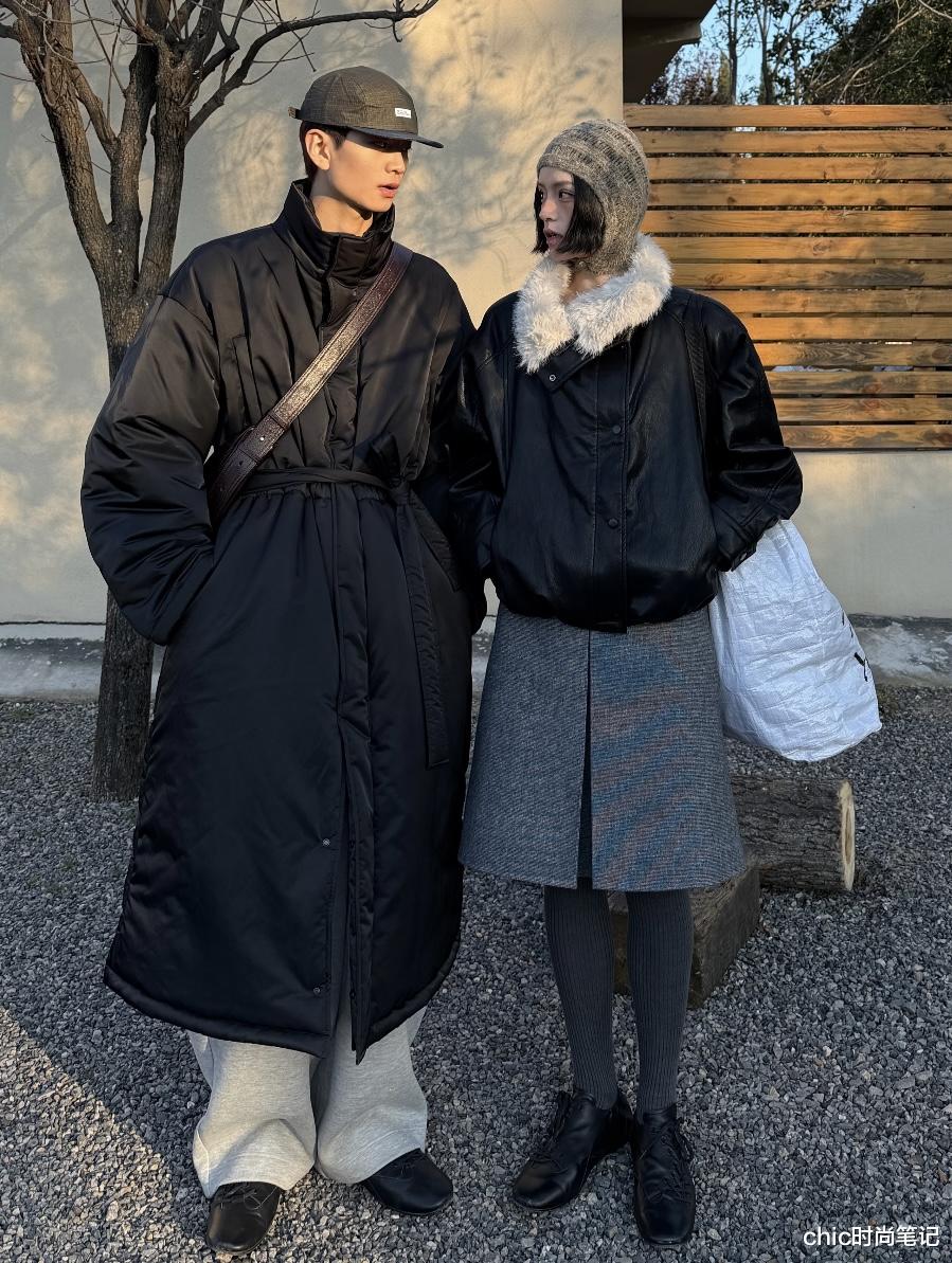 进入冬季后,棉服、羽绒服要安排起来,情侣穿搭也不例外。男生:超长款黑色羽绒服+灰色长裤+黑色鞋子,女生:黑色短款皮毛一体外套+深灰色半身裙+黑色鞋子,两者都是冷色调,高级又深邃。