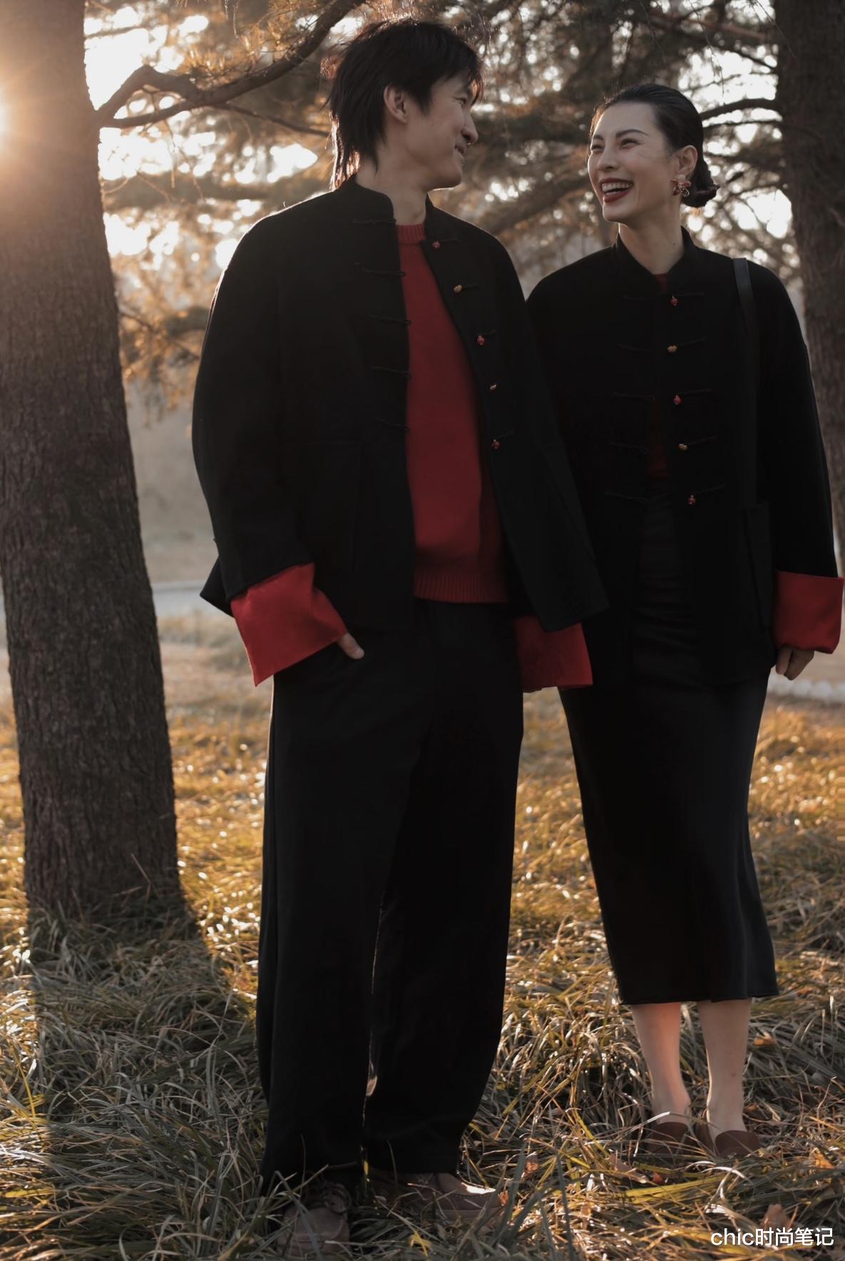 情侣装当然少不了中国风的加持,黑红相配的质感外套做了盘扣与缎面袖的设计,上衣内搭是红色,下身是黑色,黑红搭配,经典而高级。